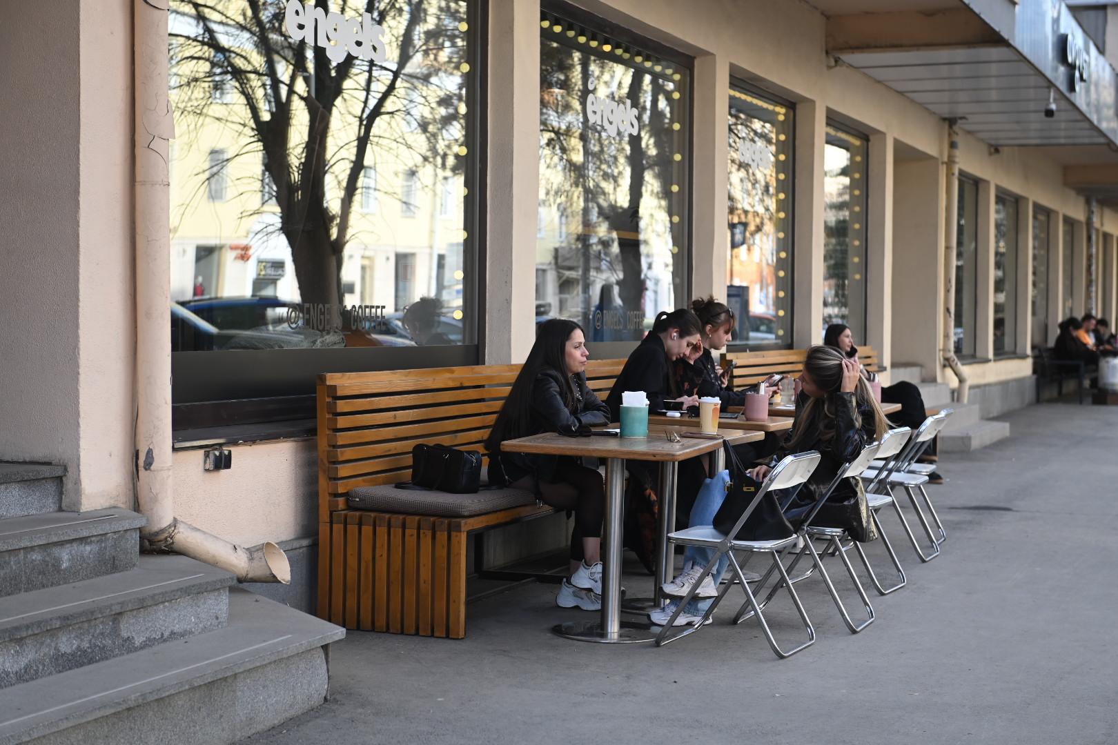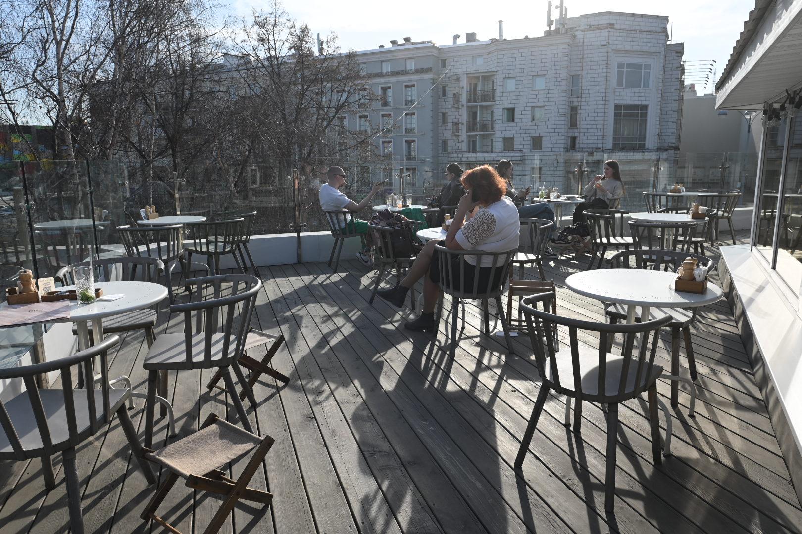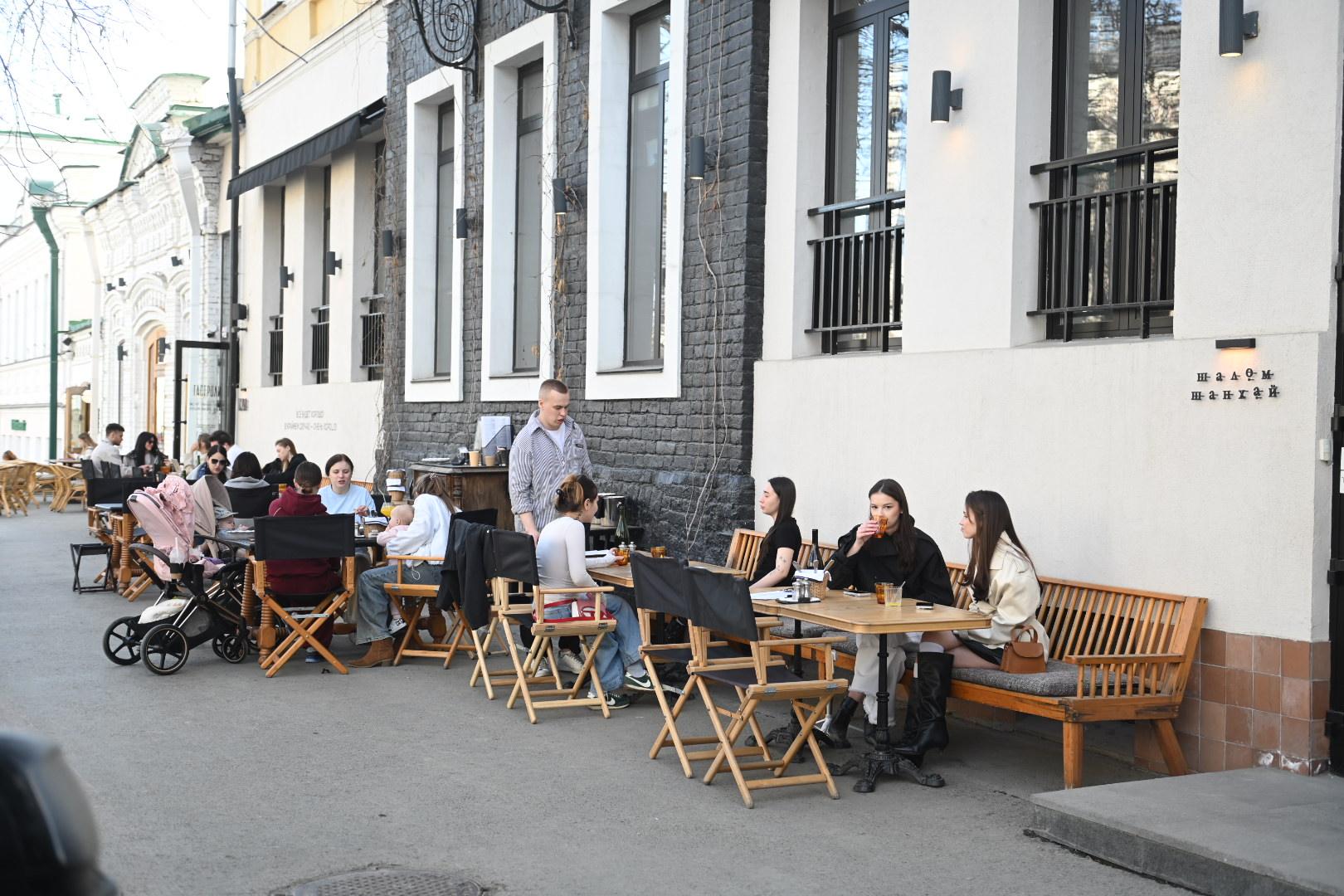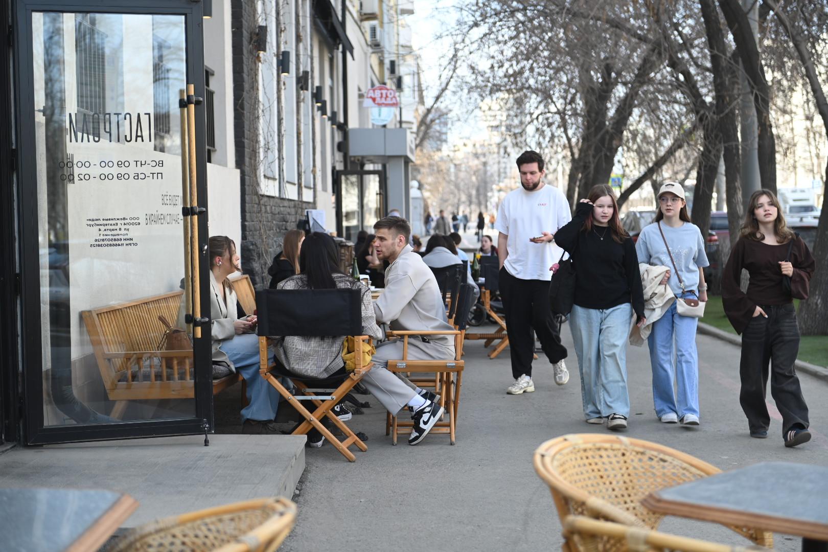 В Екатеринбурге из-за аномально теплой погоды в начале апреля открылись летние веранды. Горожане активно посещают рестораны и кафе в центре города.