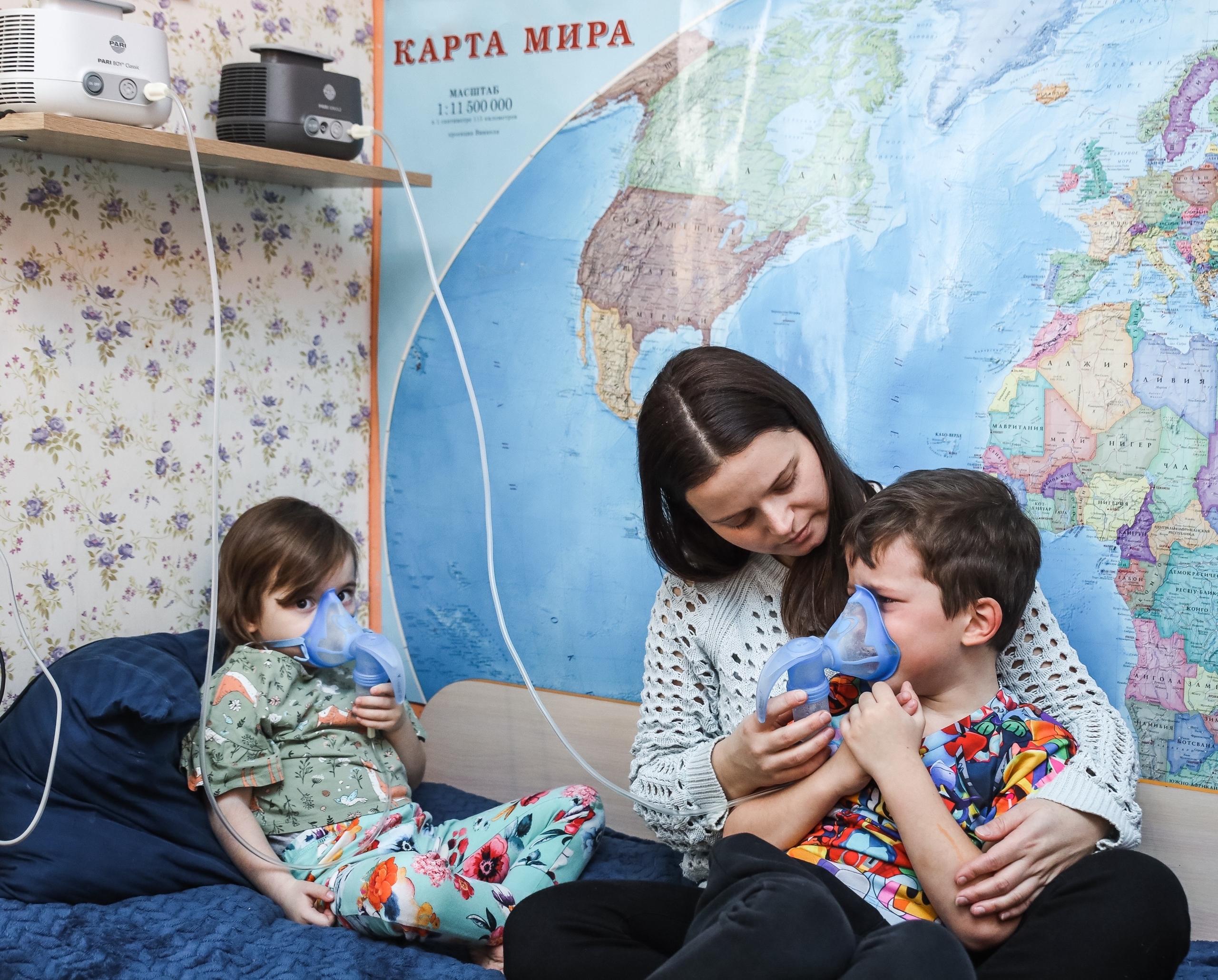 В семье пятеро детей, двое младших — Анфиса и Гриша — имеют заболевания легких и нуждаются в постоянных ингаляциях.