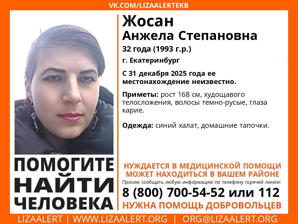 Анжела Жосан вышла из дома в Екатеринбурге, будучи одетой лишь в домашний синий халат и тапочки. Её рост составляет 168 см, телосложение худощавое. У пропавшей тёмно-русые волосы и карие глаза.