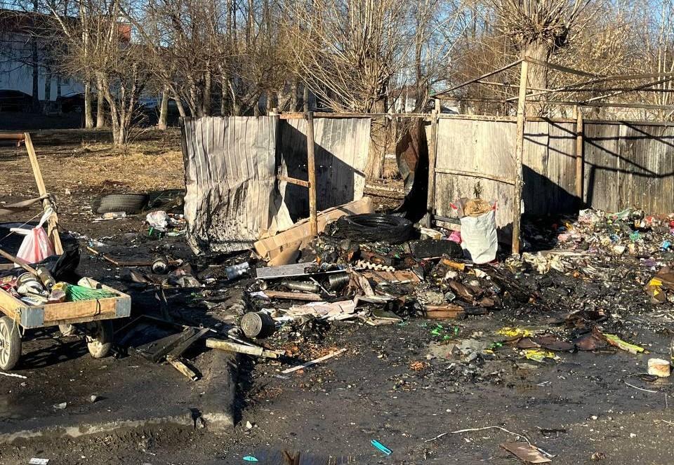 На контейнерной площадке полностью сгорел строительный мусор, в том числе автомобильные покрышки.