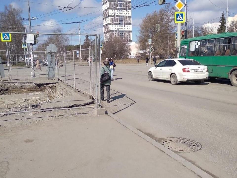 В Верх-Исетском районе уже полгода пешеходы вынуждены идти по проезжей части из-за перекрытого тротуара.