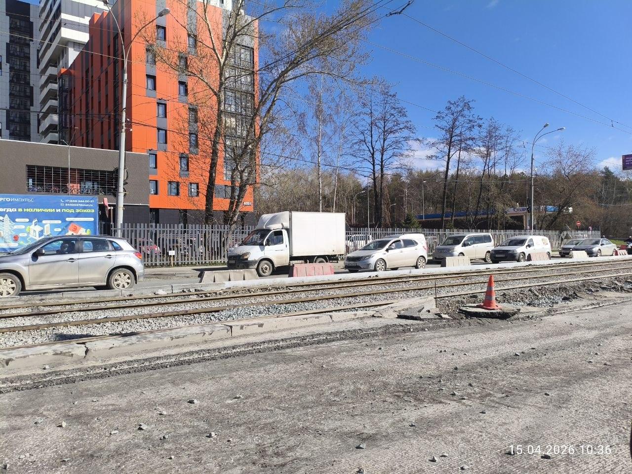 Екатеринбуржец зафиксировал процесс обособления трамвайной линии, ведущей в район ЖБИ.