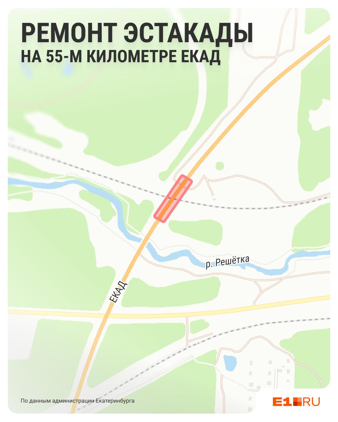 На Екатеринбургской кольцевой автомобильной дороге (ЕКАД) планируется капитальный ремонт автомобильной эстакады, которая пересекает железнодорожные пути. Сооружение находится на 55-м километре трассы, вблизи станции Северка и поселка Палкинский торфяник.