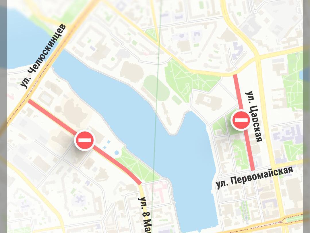 Для объезда перекрытой улицы Царской предложен маршрут по улице Карла Либкнехта и проспекту Ленина. На улице Бориса Ельцина альтернативный путь пролегает по улицам Челюскинцев, Маршала Жукова, Антона Валека и Вайнера.